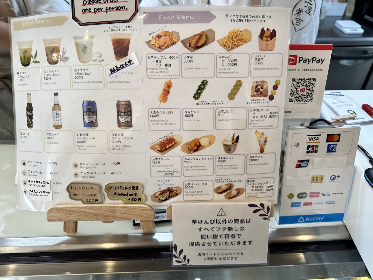 “ We stumbled on this cafe during January 2025 winter time. We ordered Red bean & Butter sweet potato, Sweet potato potage, Sweet potato chips, and Sweet potato milk. They were delicious! Recommended for the Red beand & Butter sweet potato and Sweet potato milk!. The staffs were also very kind to help us choose, and reheat the food because we were eating with 1.5 years old son. Our son finished the Sweet potato milk mostly by himself, and we bought 1 more! It was nice to eat warm sweet potato during the cold winter. Would come again when we are in Kyoto! ”